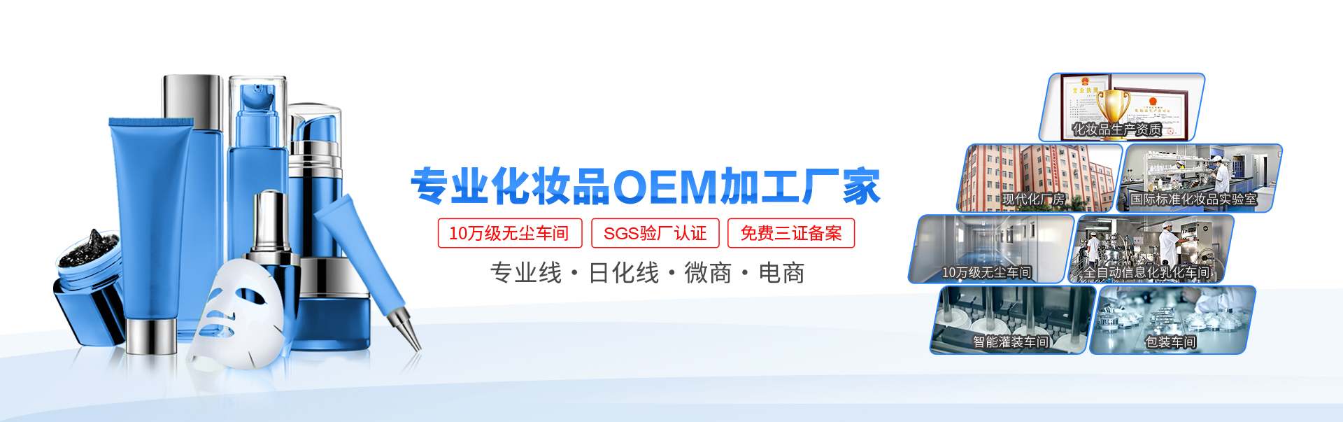 藍淇化妝品加工廠擁有20年化妝品品牌代加工及產品研發生產經驗,專注服務電商品牌、專業線化妝品OEM代加工,已經協助150多家國內外知名化妝品品牌成功上市。 查看更多》